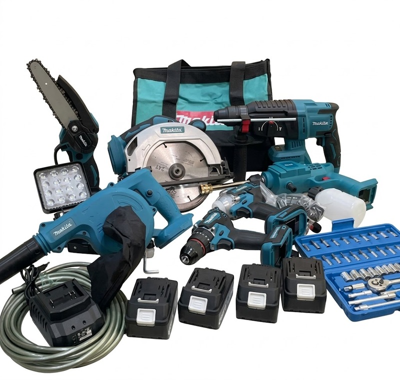 طقم مكيتا 10 قطع مع 4 بطاريات (بكسات 46 قطعة) +صينية